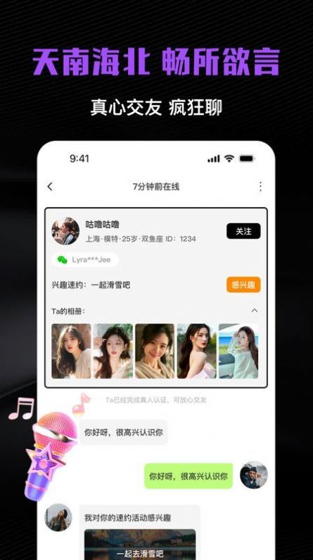 2、真心交友,疯狂聊天,真实体验交友的娱乐趣味,即刻进行;