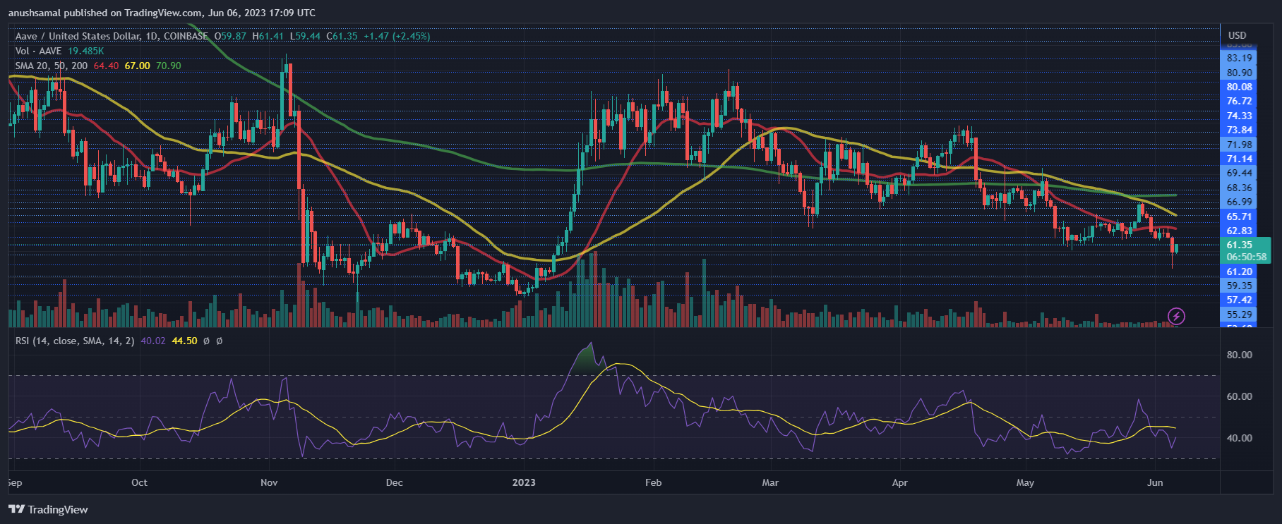 在今年开局大好之后,AAVE 在 92 美元的水平遇到阻力时遭遇挫折,导致两个月内回调 34%。美国证券交易委员会起诉币安最近对加密市场造成的打击进一步影响了山寨币的表现。