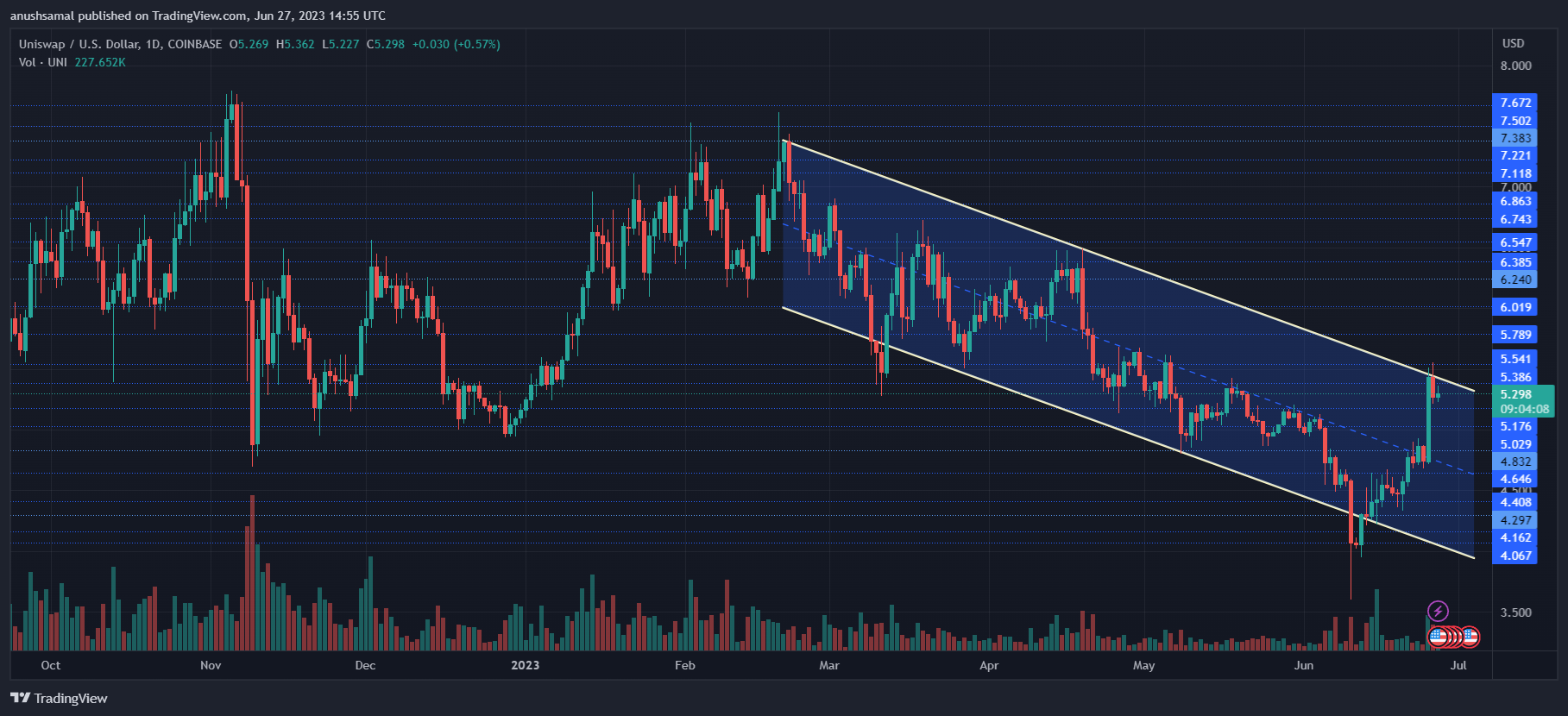尽管本月早些时候遭受了损失,Uniswap (UNI) 的价格已成功恢复。然而,它一直难以突破重要的阻力位,导致其保持停滞状态。尽管如此,UNI的技术分析显示出看涨信号,买盘强度显着,需求和积累均显着增加。