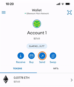 1.前往账户主页。从这里,点击“发送”按钮,在主页的“资产”选项卡下,点击代币便可发送。