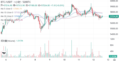 7月11日,比特币的开盘价为57481.56美元,盘中最高触及59374.87美元,最低下探至57359.88美元,最终收盘于57741.75美元。该日24小时交易额为128.63亿美元,总市值为1.13万亿美元。