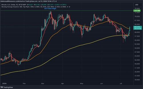 目前,比特币已经连续四天上涨,并成功突破了关键的200天指数移动平均线,扭转了数周以来的负面价格走势。这一系列积极信号表明,比特币正逐渐摆脱近期的低迷状态,重新获得市场的青睐。