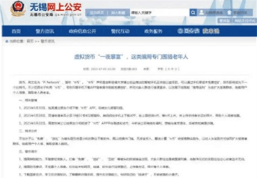 消息三:无锡警方紧急提醒:警惕Pi Network虚拟货币诈骗,老年人成重点目标
