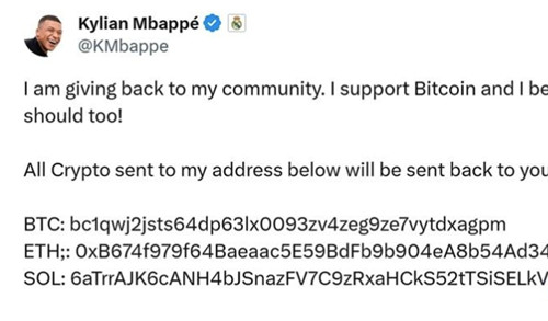 灾难无独有偶,在姆巴佩的Meme币贴文删除后,又疑似遭到短期黑入,在X上又贴出了发布加密货币地址,并且承诺双倍回赠的钓鱼讯息,包含以太币和Solana、比特币等地址,而该推文也在短短数分钟内遭删除。目前尚不清楚被害金额多少,但据考察,短短期间光是在以太坊地址上就有4笔交易,总金额为0.0032ETH,虽然受害金额不多,但能看出来,即使是老套的钓鱼手段,仗着姆巴佩的人气,依然还是有不少人受骗上当。